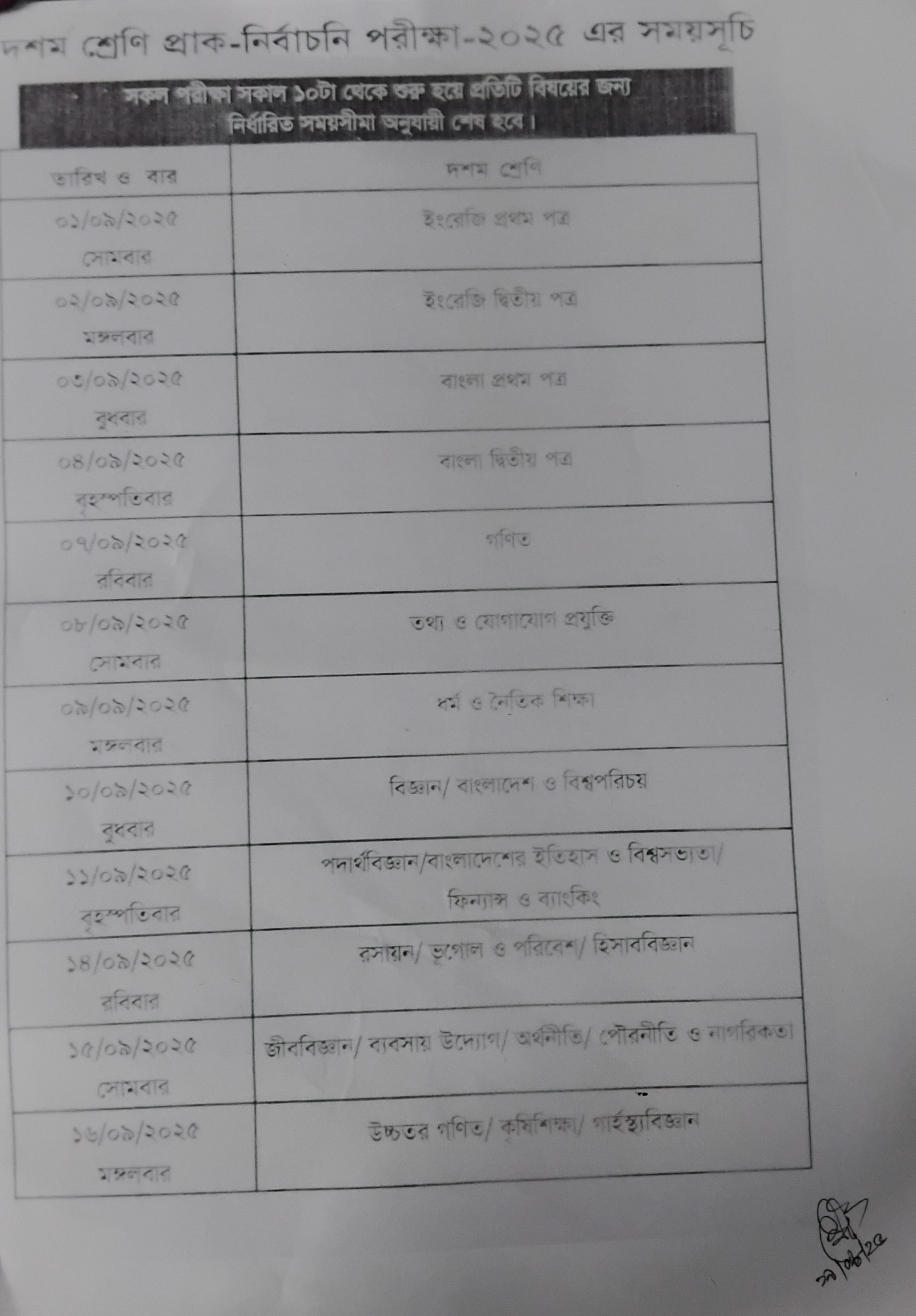 বিষয়ঃ: Pre-test Examination Rutin of Class 10.তারিখঃ: ২২/০৮/২০২৫ ইংDownload