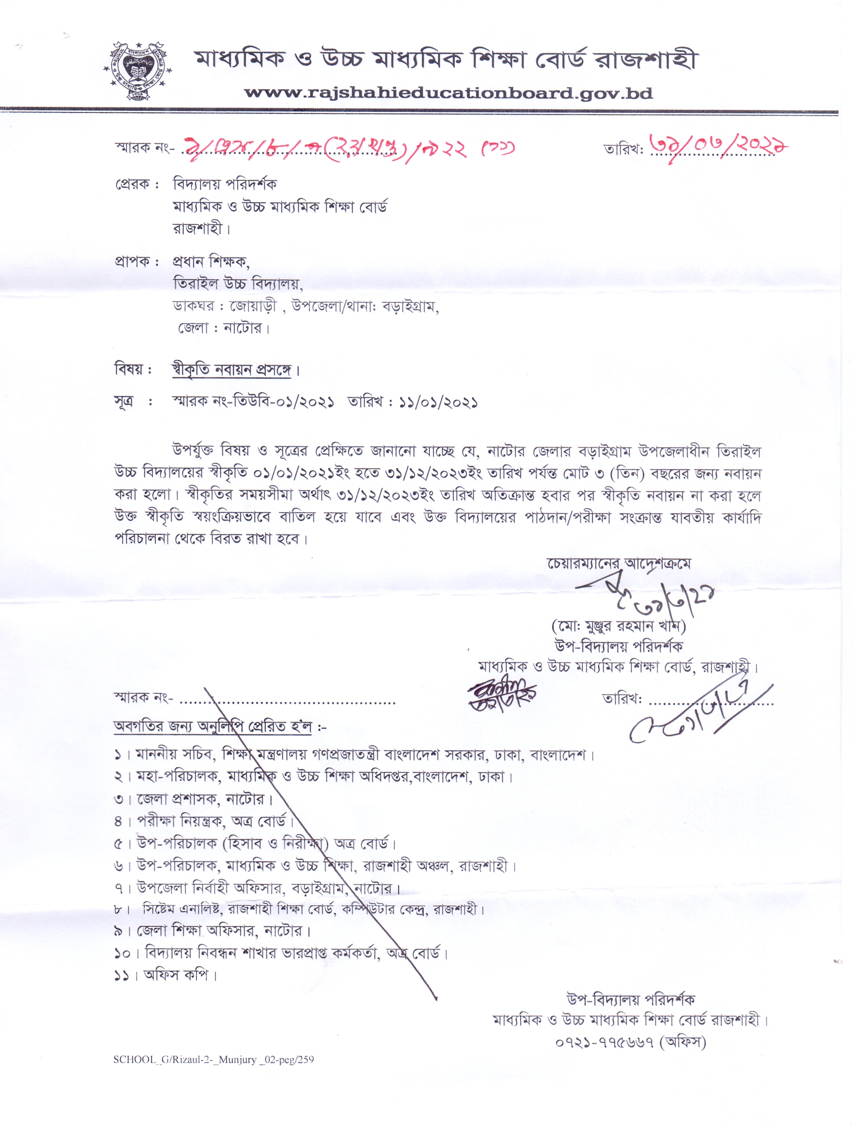 পাঠদানের অনুমতি ও স্বীকৃতি